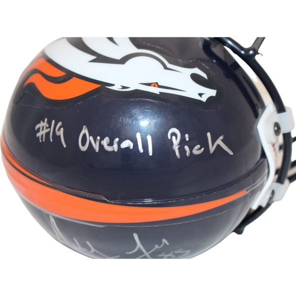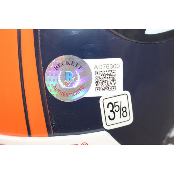 The number in the listing title is just an inventory sku for our records and is not the authentication number. This is the exact item that you will receive so please see pictures for condition. This is a VSR4 mini helmet that was personally autographed by Ashley Lelie with 19th Overall Pick inscription. Includes a certificate of authenticity from Beckett Authentication Services (BAS) and Denver Autographs.