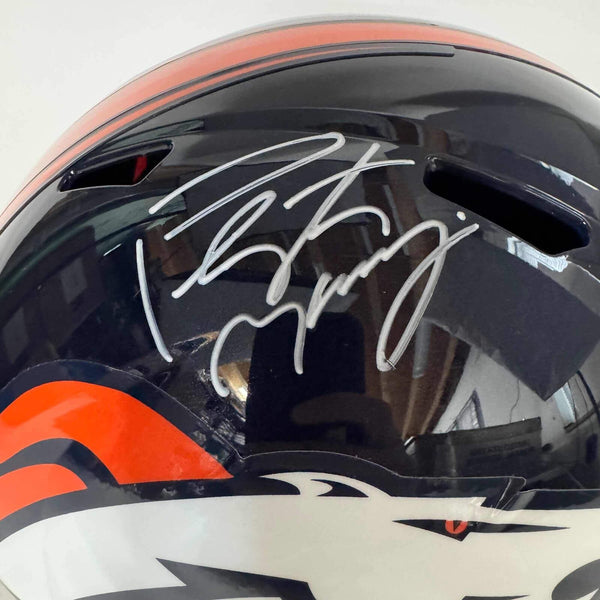 Autographed/Signed Peyton Manning Denver Broncos Full Size FS Helmet Steiner COA This item is simply authentic and comes with a trusted third party authentication.