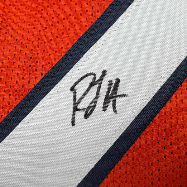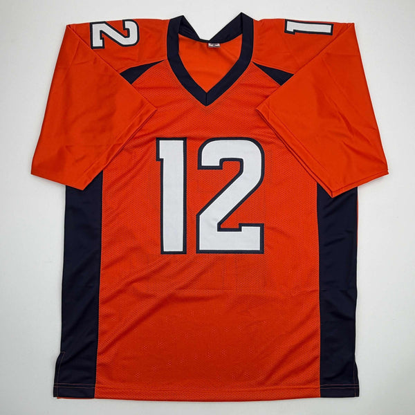 Autographed/Signed R.J RJ Harvey #12 Denver Orange Football Jersey JAS COA Jersey has no brand names or logos. This is a custom jersey and was not manufactured by or in any manner associated with any professional sports league or manufacturer. This custom jersey carries no professional sports league designation. The item is intended to be an autographed collectible. The custom jersey displays the name and number of the player. This item in no way is affiliated with or connected to any professional sports organization. Size is XL.