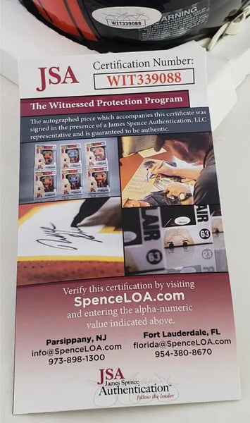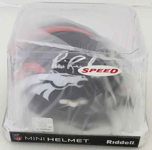 This autographed Riddell Speed mini helmet has been personally hand-signed by Bill Romanowski of the Denver Broncos.This autograph is certified by James Spence Authentication's (JSA) Witnessed Protection Program. That means that a JSA representative was present when this item was signed. It comes with the numbered hologram and matching Certificate of Authenticity.