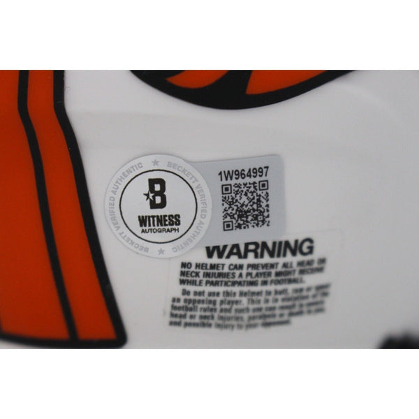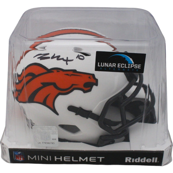 The number in the listing title is just an inventory sku for our records and is not the authentication number. The item pictured is a stock photo unless otherwise noted. This is a Denver Broncos Lunar Speed Mini Helmet that was personally autographed by Bo Nix. Includes a certificate of authenticity from Beckett Authentication Services (BAS) and Denver Autographs.