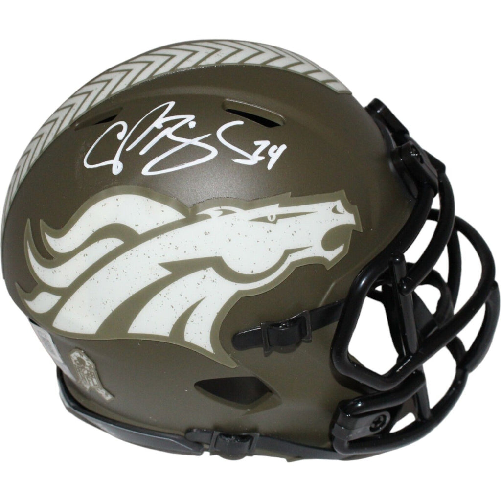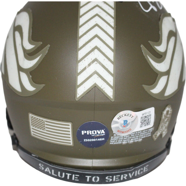 Champ Bailey Autographed Denver Broncos Salute Mini Helmet Beckett 42286 The number in the listing title is just an inventory sku for our records and is not the authentication number. The item pictured is a stock photo unless otherwise noted. This is a Denver Broncos Salute to Service Mini Helmet that was personally autographed by Champ Bailey. Includes a certificate of authenticity from Beckett Authentication Services (BAS) and Denver Autographs.