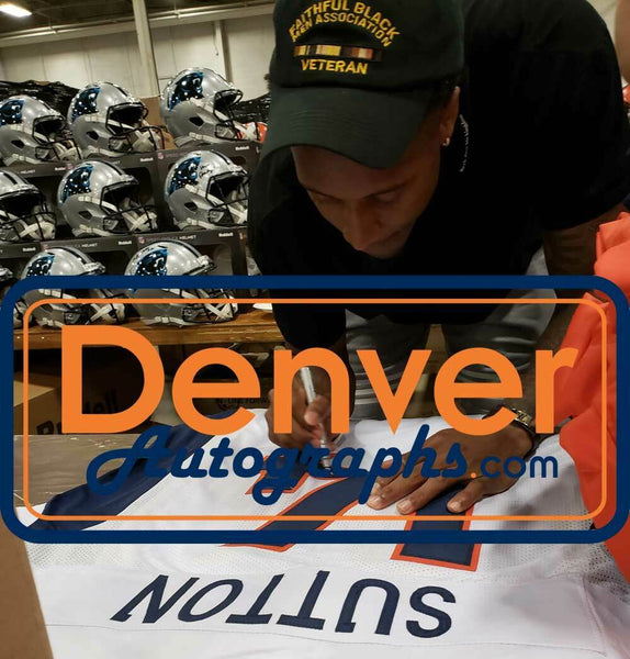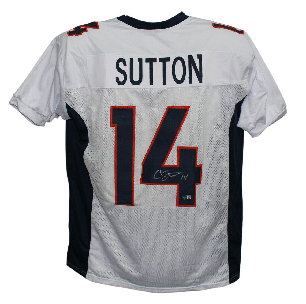 Courtland Sutton Autographed/Signed Pro Style White XL Jersey Beckett 34006 The number in the listing title is just an inventory sku for our records and is not the authentication number. This is a custom pro style white XL jersey with sewn on name and numbers that was personally autographed by Courtland Sutton. Includes a certificate of authenticity from Beckett Authentication Services (BAS) and Denver Autographs.