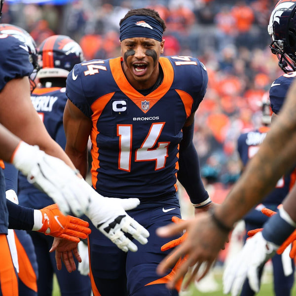 Custom on-field style jersey has everything sewn on, size XL. Hand-signed in black felt-tip pen by Courtland Sutton. The lot / autograph(s) includes an official Beckett Authentication Services serially numbered hologram and QR Code Card for authenticity purposes.Authentication: Beckett Hologram with QR code card