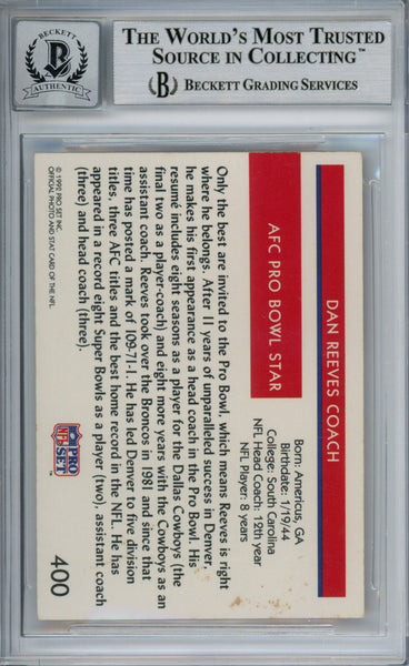 Dan Reeves Autographed 1992 Pro Set #400 Trading Card Beckett 10 Slab 37482 The number in the listing title is just an inventory sku for our records and is not the authentication number. The item pictured is a stock photo unless otherwise noted. This is a trading card that was personally autographed by Dan Reeves. This has been professionally slabbed by Beckett Authentication Services (BAS) and includes a certificate of authenticity from Denver Autographs.