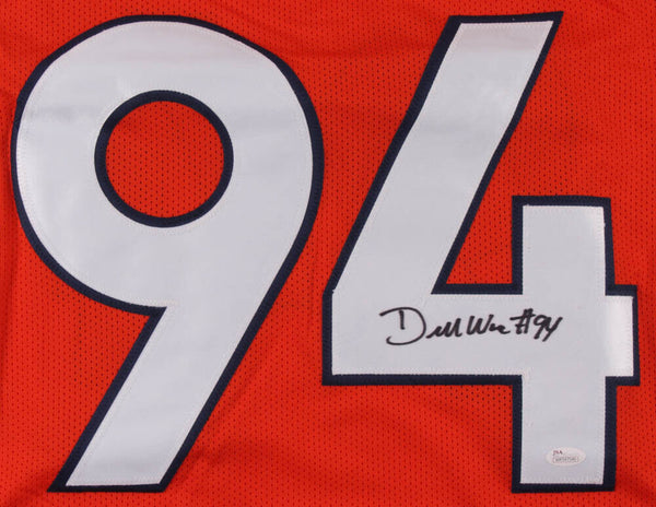 Custom on-field style jersey. Everything is sewn on, size XL. Hand-signed in black felt-tip pen by DeMarcus Ware. The lot / autograph(s) includes an official James Spence Authentication (JSA) hologram and matching COA for authenticity purposes. The signing of this item was witnessed by JSA.Authentication: JSA COA