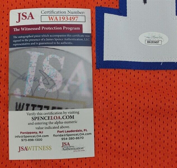 Custom on-field style jersey. Everything is sewn on, size XL. Hand-signed by Don Horn.The lot / autograph(s) includes an official James Spence Authentication (JSA) hologram and matching COA for authenticity purposes. The signing of this item was witnessed by JSA.Authentication: JSA COA