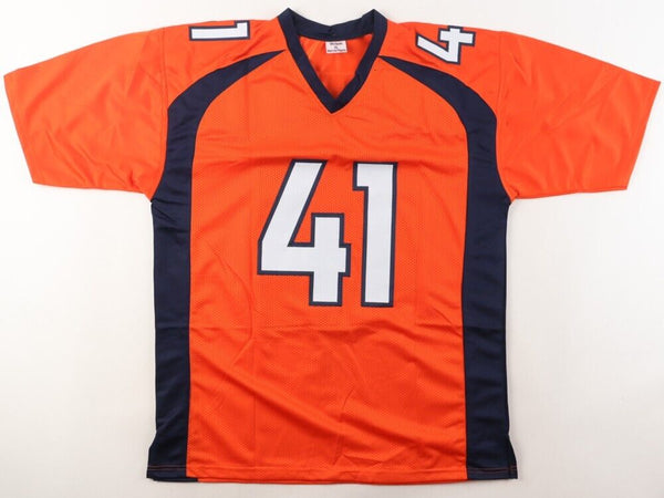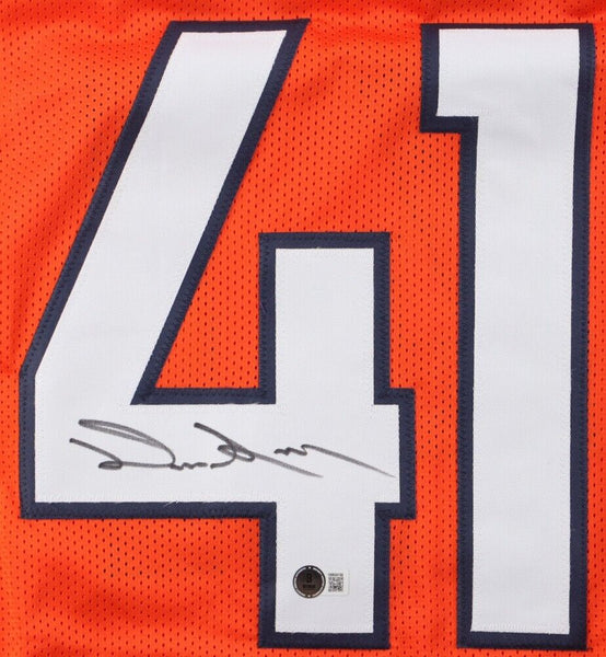 Custom on-field style jersey. Everything is sewn on, size XL. Hand-signed and inscribed by Drew Sanders.The autograph includes an official Beckett Authentication Services serially numbered hologram and QR Code card for authenticity purposes.Authentication: Beckett Hologram with QR Code Card