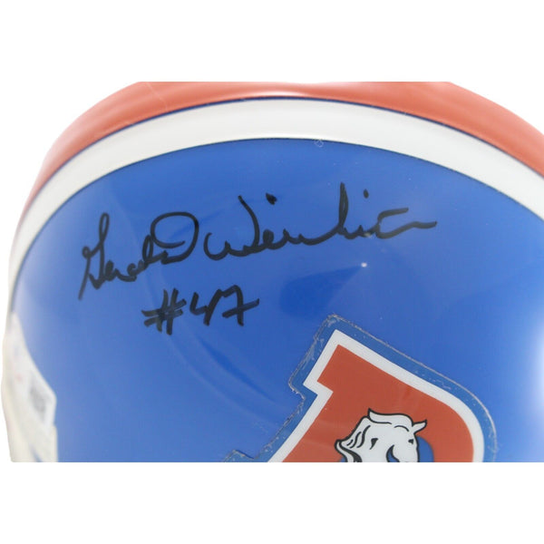 The number in the listing title is just an inventory sku for our records and is not the authentication number. This is the exact item that you will receive so please see pictures for condition. This is a VSR4 replica mini helmet that was personally autographed by Gerald Willhite. Includes a certificate of authenticity from Beckett Authentication Services (BAS) and Denver Autographs.