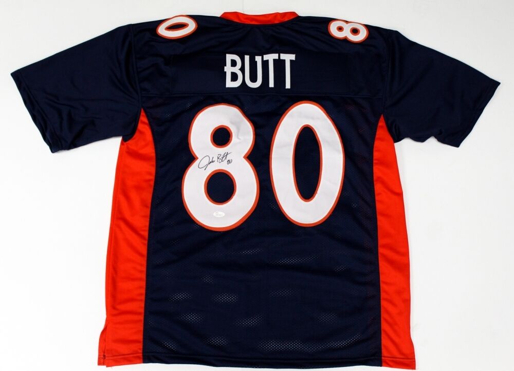 Custom on-field style jersey. Everything is sewn on, size XL. It has been hand-signed in black felt-tip pen by Jake Butt. The lot / autograph(s) includes an official James Spence Authentication (JSA) hologram and matching COA for authenticity purposes. The signing of this item was witnessed by JSA.Authentication: JSA COA