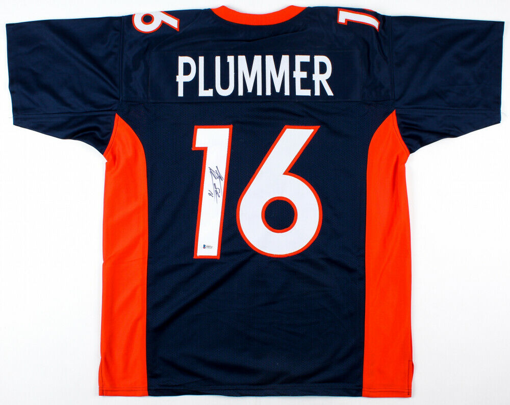 Custom on-field style jersey. Everything is sewn on, size XL. Hand-signed by Jake Plummer.The lot / autograph(s) includes an official Beckett Authentication Services serially numbered hologram and matching COA for authenticity purposes. The signing of this item was witnessed by Beckett.Authentication: Beckett COA
