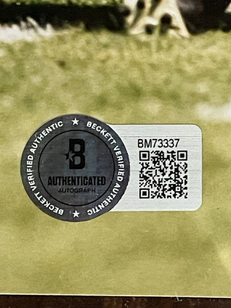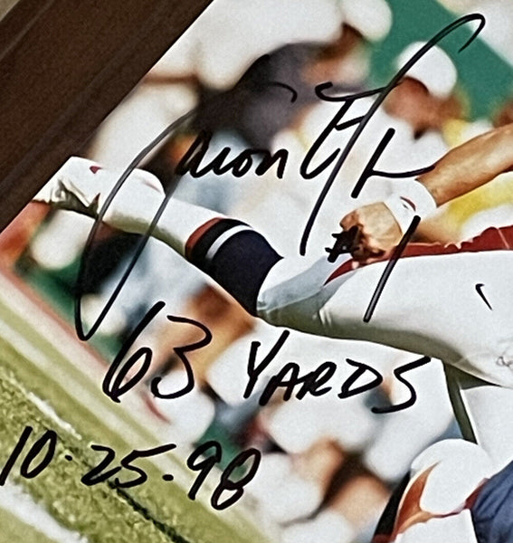 The number in the listing title is just an inventory sku for our records and is not the authentication number. This is the exact item that you will receive so please see pictures for condition. This is a 8x10 plaque that was personally autographed by Jason Elam with 63 yards inscription. Includes a certificate of authenticity from Beckett Authentication Services (BAS) and Denver Autographs.