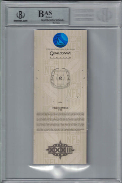 John Elway Autographed Denver Broncos Super Bowl XXXII Ticket BAS 24649 This is a Super Bowl XXXII ticket that was personally autographed by John Elway. This item includes a certificate of authenticity from Beckett Authentication Services (BAS) and Denver Autographs.