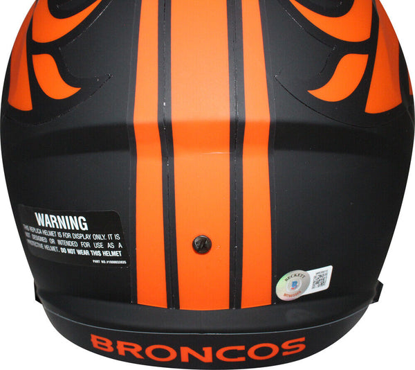 John Elway Signed Denver Broncos F/S Eclipse Helmet Beckett 40852 The number in the listing title is just an inventory sku for our records and is not the authentication number. The item pictured is a stock photo unless otherwise noted. This is a Denver Broncos Replica Eclipse Full Size Helmet that was personally autographed by John Elway. Includes a certificate of authenticity from Beckett Authentication Services (BAS) and Denver Autographs.