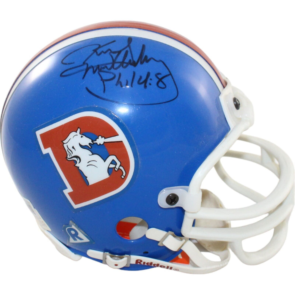 The number in the listing title is just an inventory sku for our records and is not the authentication number. This is the exact item that you will receive so please see pictures for condition. This is a VSR4 replica mini helmet that was personally autographed by Karl Mecklenburg. Includes a certificate of authenticity from Beckett Authentication Services (BAS) and Denver Autographs.
