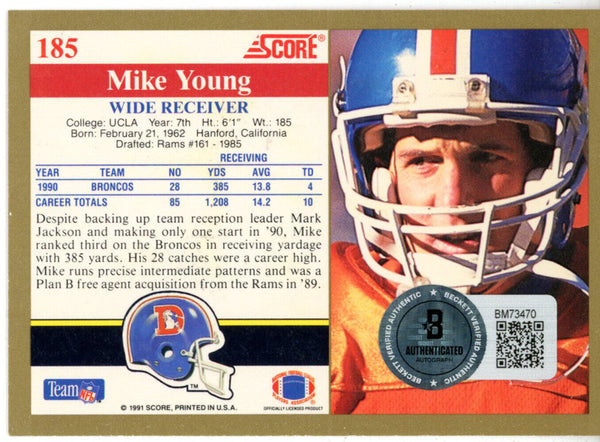 Mike Young Autographed 1991 Score #185 Trading Card Beckett 44801