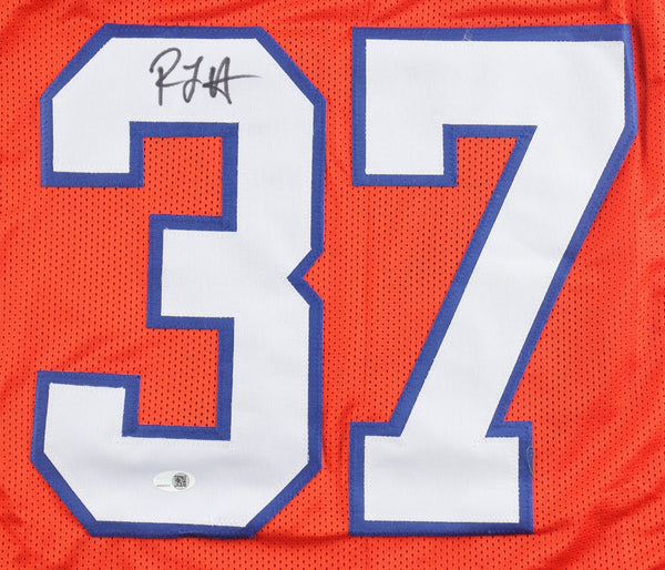 Custom on-field style jersey. Everything sewn on, size XL. Hand-signed by R. J. Harvey.The autograph includes an official James Spence Authentication (JSA) scannable hologram and matching QR Code card for authenticity purposes. The signing of this item was witnessed by JSA.Authentication: JSA Scannable Hologram with QR Code card