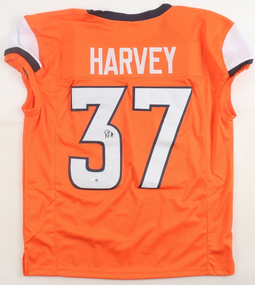 Custom on-field style Pro Cut jersey. Everything sewn on, size XL. Hand-signed by R. J. Harvey.The autograph includes an official James Spence Authentication (JSA) scannable hologram and matching QR Code card for authenticity purposes. The signing of this item was witnessed by JSA.Authentication: JSA Scannable Hologram with QR Code card