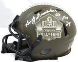 Randy Gradishar Autographed Denver Broncos Salute to Service Speed Mini Helmet w/HOF - Beckett W Hologram *White This is a hand autographed Mini Helmet of Randy Gradishar of the Denver Broncos. This is a Riddell Football Salute to Service Speed Mini Helmet. This item has a Beckett Witnessed Authentication, which comes with a numbered sticker hologram and a QR code for verification. You can view this item on the Beckett website and it shows when and where the item was signed. It was signed either at a public autograph appearance or a private signing. This is a stock photo of the item. Although you may not receive this exact item, the item you receive is virtually identical and brand new in great shape.