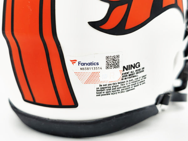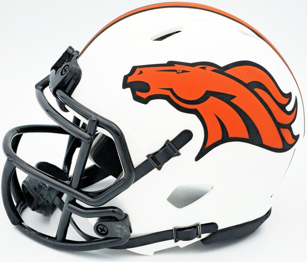 This is a Denver Broncos Lunar Eclipse White Speed Mini Helmet that has been hand signed by Russell Wilson. The Eclipse helmets are delicate and may have some marks or scratches on them. This item has been certified authentic by Fanatics and comes with their tamper-proof sticker.