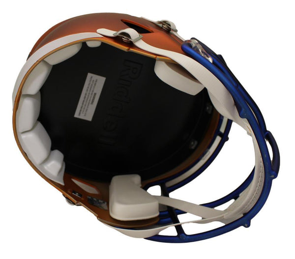 Russell Wilson Autographed Denver Broncos Full Size True Blaze Helmet FAN 36566 The number in the listing title is just an inventory sku for our records and is not the authentication number. The item pictured is a stock photo unless otherwise noted. This is a Denver Broncos full size true blaze speed replica helmet that was personally autographed by Russell Wilson. Includes a Fanatics Authentic hologram and a certificate of authenticity from Denver Autographs.