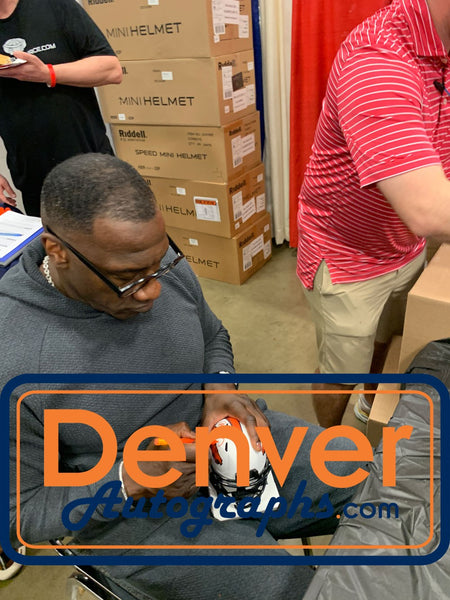 The number in the listing title is just an inventory sku for our records and is not the authentication number. The item pictured is a stock photo unless otherwise noted. This is a Denver Broncos Lunar Mini Helmet that was personally autographed by Shannon Sharpe. Includes a certificate of authenticity from Beckett Authentication Services (BAS) and Denver Autographs.FREE SHIPPING within the USA on orders over $10!