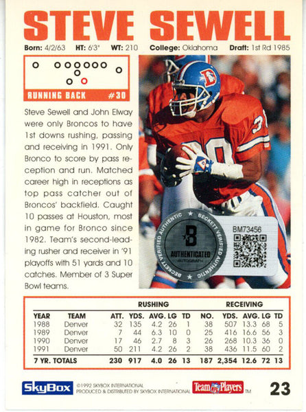 The number in the listing title is just an inventory sku for our records and is not the authentication number. This is the exact item that you will receive so please see pictures for condition. This is a trading card that was personally autographed by Steve Sewell. Includes a certificate of authenticity from Beckett Authentication Services (BAS) and Denver Autographs.FREE SHIPPING within the USA on orders over $10!