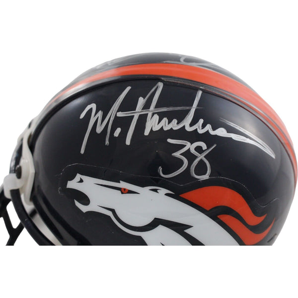 The number in the listing title is just an inventory sku for our records and is not the authentication number. This is the exact item that you will receive so please see pictures for condition. This is a VSR4 mini helmet that was personally autographed by Trevor Pryce and Mike Anderson. Includes a certificate of authenticity from Beckett Authentication Services (BAS) and Denver Autographs.