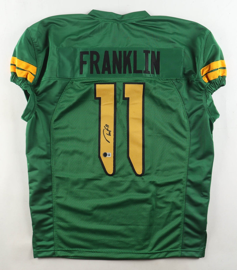 Custom on-field style jersey. Everything sewn on, size XL. Hand-signed by Troy Franklin.The autograph includes an official Beckett Authentication Services serially numbered scannable hologram and QR Code Card for authenticity purposes. The signing of this item was witnessed by Beckett.Authentication: Beckett Scannable Hologram with QR Code Card