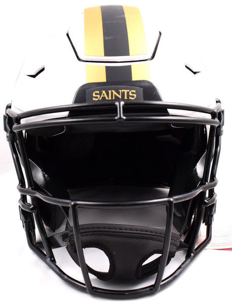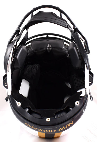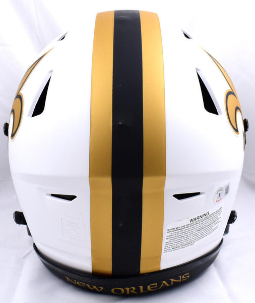 Derek Carr Autographed New Orleans Saints F/S Lunar Speed Flex Helmet-Beckett W Hologram *Gold This is a Derek Carr of the New Orleans Saints hand autographed Riddell Football Lunar Speed Flex Full Size Authentic Helmet. This item has a Beckett Witnessed Authentication, which comes with a numbered sticker hologram and a QR code for verification. You can view this item on the Beckett website and it shows when and where the item was signed. It was signed either at a public autograph appearance or a private signing. This is a stock photo of the item. Although you may not receive this exact item, the item you receive is virtually identical, brand new, and in great shape.