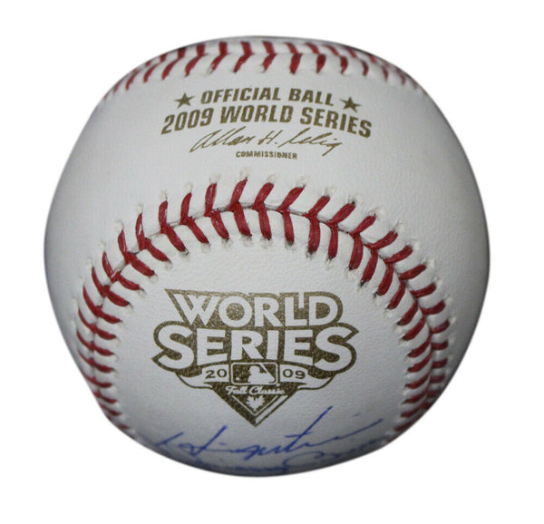 2009 New York Yankees Team Signed World Series Baseball 9 Sigs Steiner 33949 The number in the listing title is just an inventory sku for our records and is not the authentication number. This is an official 2009 World Series baseball that was personally autographed by 9 members of the New York Yankees team including Jorge Posada, Andy Pettitte, Hideki Matsui, Mariano Rivera, Mark Teixeira, Johnny Damon, Joe Girardi, Alex Rodriguez and Derek Jeter. This is the exact item that you will receive so please see pictures for condition. Includes a certificate of authenticity from Steiner Sports and Denver Autographs.
