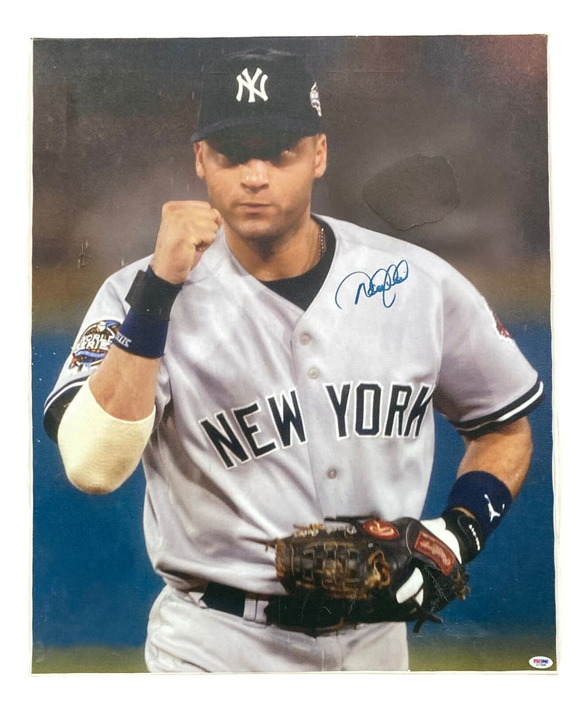 Featured is a Derek Jeter signed 22x28 canvas. This canvas has been hand signed by Jeter and comes with the PSA hologram only. This canvas has been professionally stretched and mounted. This canvas would make a great addition to any sports memorabilia collection! **Please see photos prior to purchasing. This canvas is being sold as is!**. SPECIFICATIONS Autographed By: Derek Jeter Team: New York Yankees Sport: Baseball Authentication: Professional Sports Authenticator (PSA)