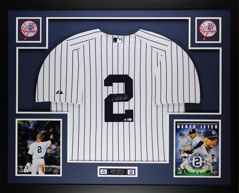 Derek Jeter Autographed Framed Pinstriped New York Yankees Jersey