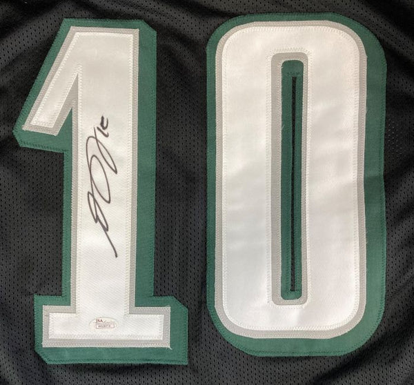 Featured is a DeSean Jackson signed custom football jersey. This jersey has been hand signed by Jackson and comes with the JSA hologram. This jersey features professionally sewn letters and numbers and is size XL. This jersey has no team tags or emblems and is intended as a sports collectible!. SPECIFICATIONS Autographed By: DeSean Jackson Team: Philadelphia Eagles Sport: Football Authentication: James Spence Authentication (JSA)