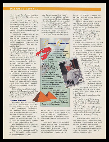 Desmond Howard Autographed 8x11 Magazine Page Photo Michigan Beckett QR #BS36795