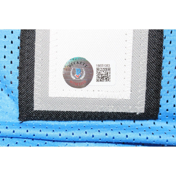 The number in the listing title is just an inventory sku for our records and is not the authentication number. The item pictured is a stock photo unless otherwise noted. This is a Pro Style Blue Jersey with sewn on numbers that was personally autographed by Calvin Johnson. Includes a certificate of authenticity from Beckett Authentication Services (BAS) and Denver Autographs.