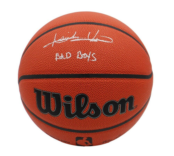 A Detroit Pistons Wilson Indoor/Outdoor NBA Basketball hand signed by Isiah Thomas. The item and signature are in excellent condition. In addition to signing his name, Isiah inscribed "Bad Boys" on the item. Isiah Thomas is a former professional basketball player and Hall of Fame point guard, widely regarded as one of the greatest to ever play the game. Thomas played his entire 13-season NBA career with the Detroit Pistons (1981-1994). He led the Pistons to back-to-back NBA championships in 1989 and 1990. Thomas was a 12-time All-Star and earned All-NBA honors multiple times. AUTHENTICATION: Your item has been tagged with a SmarTag powered by Prova Technology, which gives you digital access to your items authentication records, including a proof picture from the signing.