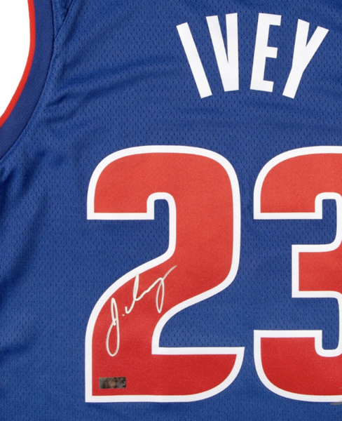 The Detroit Pistons secured their future at the Guard position when they selected Purdue's Jaden Ivey with the 5th overall pick in the 2022 NBA Draft. At Purdue, Ivey showed explosive athleticism on the offensive side of the ball and has all the tools to become a lockdown defender on the wing. Ivey's dynamic play style compliments that of Cude Cunningham, and the two guards are a lock to provide highlight reel clips all season long. Celebrate the start of Jaden Ivey's promising career in the NBA with this autographed swingman jersey!This autographed jersey includes a Panini Authentic certificate of authenticity with a unique hologram number that corresponds to the hologram on the actual collectible. These holograms protect the integrity of the product and serve to guarantee the authenticity of the signature it bears. MONEY BACK GUARANTEE! If for any reason you are not completely satisfied with the quality or authenticity of your purchase, we will gladly give you a full refund or exchange, whichever you prefer up to 30 days after purchase. Please feel free to e-mail us with any questions. Thank you. Authenticator Pre-Certified Authenticator: Panini Authenticated History of item: Jaden Ivey has signed this item in the presence of a representative from Panini Authenticated. Describe how you came to possess this item: Super Sports Center is a fully authorized dealer for Upper Deck Authenticated as well as Panini Authenticated, Mounted Memories and Steiner Sports. Other information about you and / or the item: Super Sports Center strives to deliver the most authentic in sports memorabilia from trusted companies like Mounted Memories, Steiner Sports and Upper Deck Authenticated. If it exists, we can find it for you!