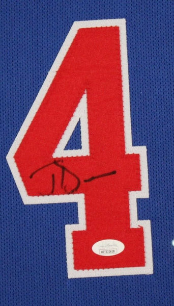 JOE DUMARS AUTOGRAPHED & PROFESSIONALLY FRAMED PRO-STYLE JERSEY(Occasionally our own stock pictures are used at times due to quantity of framing, all frames will look identical as the one pictured)Every framed autographed jersey is accompanied with a tamper-proof hologram on the signed part of the jersey from one of the main authenticators in the industry (JSA, Beckett, PSA, etc.) and can be verified on their corresponding websites to prove authenticity.THE FRAMED JERSEY MEASURES 35"x 44" & COMES WITH THE FOLLOWING:-UV Protected Acrylic-Triple Acid Free Team Colored Matting-2 High Quality 8"x10" Photos-Team Logo