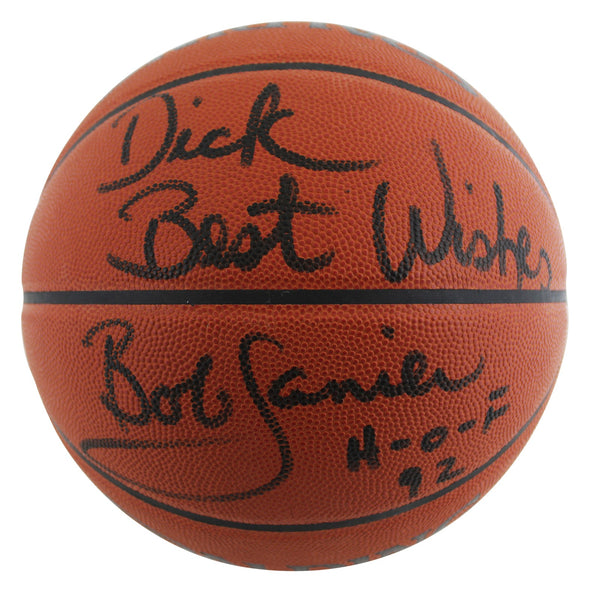 This Autographed Spalding Official NBA Game Basketball with the inscription of "Dick Best Wishes, HOF 92" has been Personally Signed by Bob Lanier of the Detroit Pistons. This item is 100% Authentic to include a hologram by Beckett Authentication Services. This item will come with an affixed Beckett Authentication Services (BAS) authentication sticker, which includes a scannable QR code to verify authenticity. Please note that Beckett no longer provides serial-numbered COA cards, and the attached BAS sticker will serve as the complete authentication for this item. The authenticity can be verified on Beckett Authentication Services website.