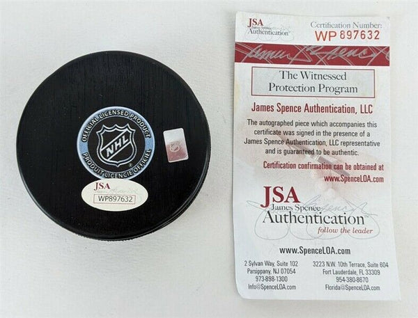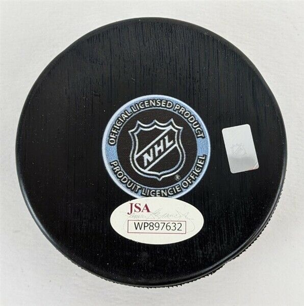 Detroit Red Wings logo hockey puck. Hand-signed in silver paint pen by N.H.L. Hall of Famer Adam Oates. The autograph includes an official James Spence Authentication (JSA) hologram and matching COA for authenticity purposes.Authentication: JSA COA