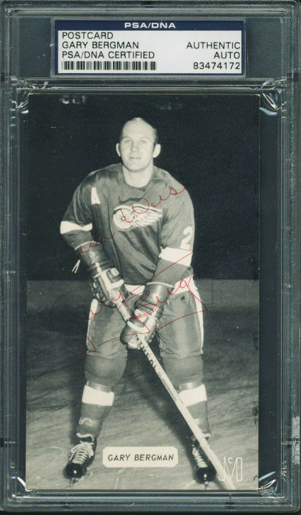 This RED WINGS GARY BERGMAN AUTHENTIC SIGNED 3.25X5.5 POSTCARD PSA/DNA SLABBED has been certified authentic. It comes slabbed and authenticated by PSA/DNA. You can also see the authentication on the PSA/DNA website, PSAcard.com.