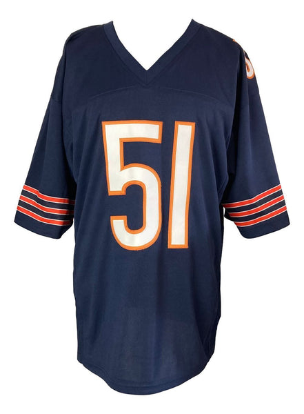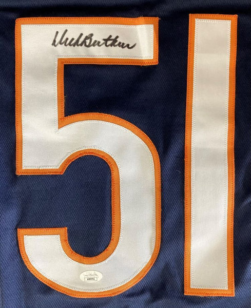 Featured is a Dick Butkus signed custom football jersey. This jersey has been hand signed by Butkus and comes with the JSA hologram and certificate of authenticity. This jersey features professionally sewn letters and numbers and is size XL. This jersey has no team tags or emblems and is intended as a sports collectible.. SPECIFICATIONS Autographed By: Dick Butkus Team: Chicago Bears Sport: Football Authentication: James Spence Authentication (JSA)