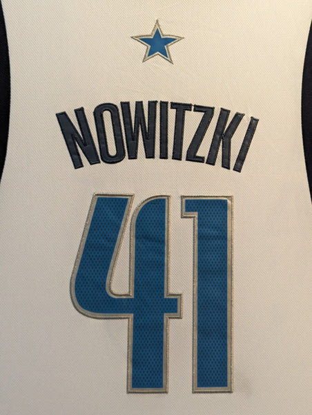 Dirk Nowitzki custom framed jersey with Autographed 8x10 PhotoBeckett HologramThe authentication is from Beckett. This signature is authenticated by a representative of Beckett! 100% AUTHENTIC!!! The jersey has fully stitched numbers on the front and back. It is a great item and a must for all great sports fans!This item is professionally framed, it measures 32"x40" inside , 42"x34" outside , using UV protective Acrylic glass for safe keeping and safe transport, team color matting, black moulding and hanging hooks on the back. All additional items in frame seen in pictures included. 100% ready to hang in your fan cave.