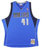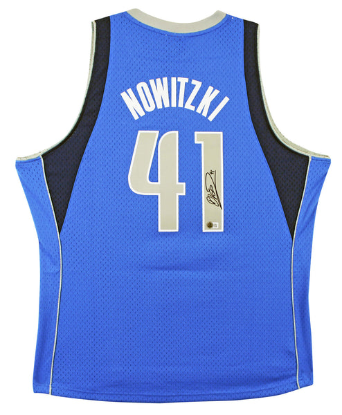 This Autographed Blue Mitchell & Ness 2010-11 Hardwood Classics Swingman Jersey has been Personally Signed by Dirk Nowitzki of the Dallas Mavericks. This item is 100% Authentic to include a hologram by Beckett Authentication Services. This item will come with an affixed Beckett Authentication Services (BAS) authentication sticker, which includes a scannable QR code to verify authenticity. Please note that Beckett no longer provides serial-numbered COA cards, and the attached BAS sticker will serve as the complete authentication for this item. We conducted an autograph signing with Dirk Nowitzki where multiples of the same item were signed. While the photographs are representative of this item, the size, placement and strength of the signature may vary. Each item is hand signed, therefore, each autograph is unique. This item can be verified through BAS. This is a X-Large sized Jersey.