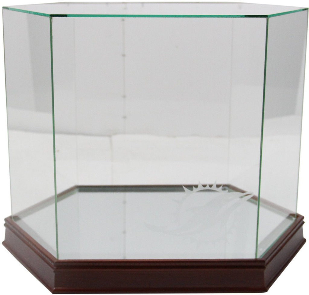 Our glass display cases are a necessity for any committed sports memorabilia enthusiast. Your timeless pieces whether autographed helmets or balls will be safe from dust and fading with our top-of-the-line exquisitely crafted cases. Each UV-protected display case is hand-made and includes a removable glass top for easy access. With a mirrored bottom and stunning cherry wood base your memorabilia will look stylish and protected in any setting.This helmet display case measures at 15x10.5x11. The available space within the case is 15 inches in length with a width of 10.5 inches and a height of 11 inches.