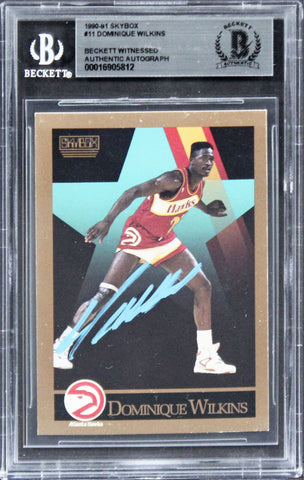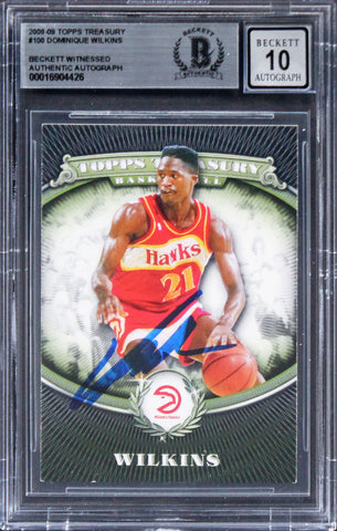This Autographed Auto Graded Gem Mint 10! 1988 Fleer #5 Card has been Personally Signed by Dominique Wilkins of the Atlanta Hawks. This item is 100% Authentic, it comes slabbed and authenticated by Beckett Authentication Services. We have multiples of this same item. While the photographs are representative of this item, the size and placement of the signature may vary. Each item is hand signed, therefore, each autograph is unique.