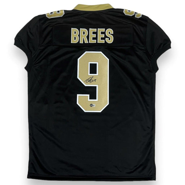 This signed item is brand new without tags or logos. This jersey is a size Large / XL. All letters and numbers are sewn on. This item will make a great gift or a great addition to any collection at an AFFORDABLE PRICE! ATHLETE: Drew Brees ITEM: Game Cut Style Custom Jersey AUTHENTICATION: This item comes with a Beckett serial #'ed hologram affixed to the item. To ensure authenticity, the hologram can be reviewed online. This process helps to ensure that the product purchased is authentic and eliminates any possibility of duplication or fraud. NOTE: All of our autographed jerseys are custom jerseys, unless otherwise noted. Our custom jerseys are NON-BRANDED, have NO logos, NO tags, NO patches, NO emblems. Pro tackle twill letters and numbers. The non-branded jerseys are made specifically for the player(s) to sign, for collectible purposes.