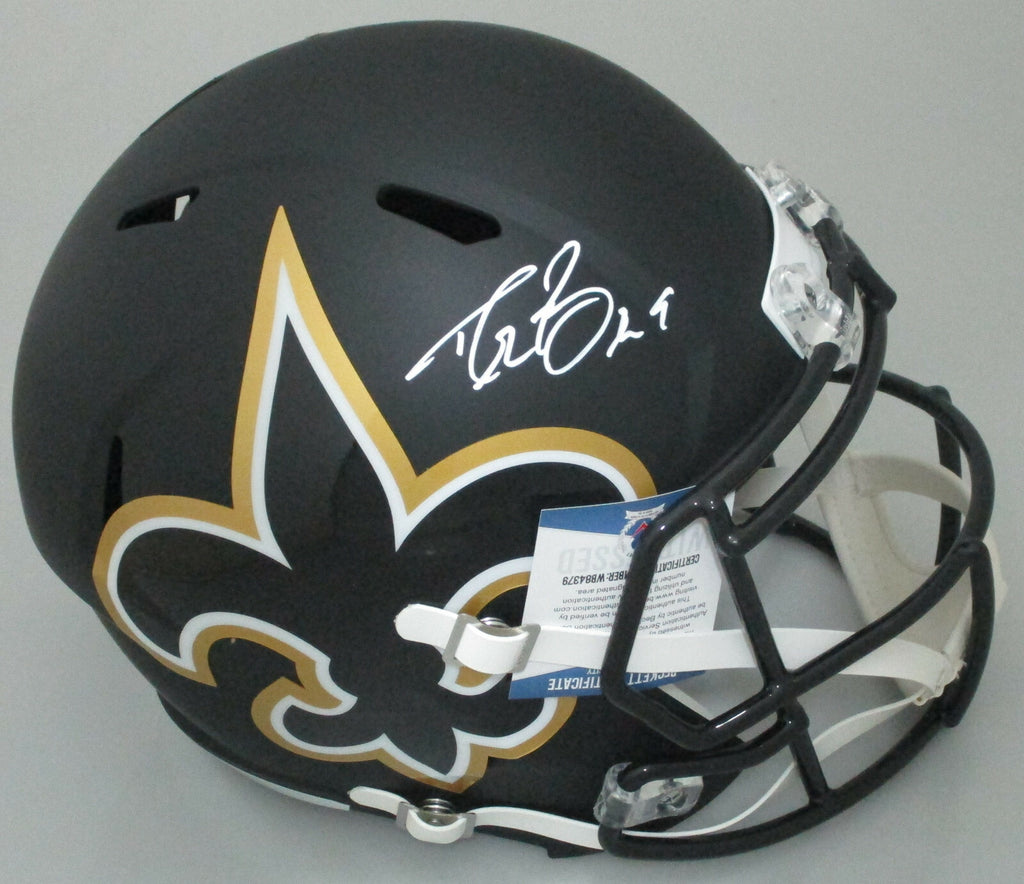 Full Size Riddell Replica AMP Helmet hand signed by New Orleans Saints quarterback DREW BREES. The signature is in White paint pen. This item was signed at a private signing and would make a great addition to any Saints collection! This item is guaranteed to be 100% authentic and will include a COA hologram from Beckett authentication.