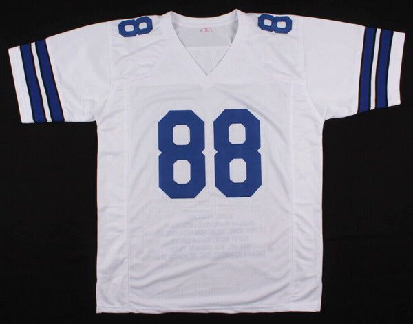 Custom on field style jersey with everything sewn on size, XL. Jersey has been hand-signed in silver paint pen by Drew Pearson. Please note Pearson's career highlights have been custom stitched on to the back of the jersey below the reverse numbers. The lot / autograph(s) includes an official James Spence Authentication (JSA) hologram and matching COA for authenticity purposes. The signing of this item was witnessed by JSA.Authentication: JSA COA